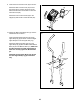 18. Identify the Right Pedal (13), which is marked with a “Right” sticker, and orient it as shown. 18 13 Attach the Right Pedal (13) to the Right Pedal Arm (49) with three M10 x 45mm Screws (75) and three M10 Split Washers (78). Make sure to use the center hole and the two outer holes to attach the Right Pedal. 49 Repeat this step on the other side of the elliptical. 78 75 19. Make sure that all parts of the elliptical are properly tightened.