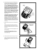 HOW TO USE THE MANUAL MODE Profile—When a workout is selected, this display mode will show a profile of the resistance settings of the workout. 1. Turn on the console. Press any button or begin pedaling to turn on the console. Pulse—This display mode will show your heart rate when you use the handgrip heart rate monitor (see step 5 on page 18). When you turn on the console, the display will turn on. A tone will sound and the console will be ready for use.