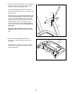 HOW TO USE A PRESET WORKOUT programmed for the next segment, the speed and/ or incline setting will flash in the display to alert you. The treadmill will then automatically adjust to the speed and incline settings for the next segment. 1. Insert the key into the console. See HOW TO TURN ON THE POWER on page 15. The workout will continue in this way until the last segment of the profile flashes in the display and the last segment ends. The walking belt will then slow to a stop. 2.