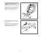16. Enfoncez le Couvercle Arrière du Capot (59) sur les Panneaux Gauche et Droit (44, 45). 16 59 44 45 17. Assurez-vous que toutes les pièces de lʼappareil elliptique sont serrées correctement. Remarque : Il est possible quʼil reste des pièces excédentaires une fois lʼassemblage terminé. Pour protéger le revêtement de sol, placez un petit tapis sous lʼappareil elliptique.