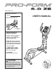 www.proform.com Model No. PFEL53909.1 Serial No. Write the serial number in the space above for reference. Serial Number Decal QUESTIONS? If you have questions, or if parts are damaged or missing, DO NOT CONTACT THE STORE; please contact Customer Care. IMPORTANT: Please register this product (see the limited warranty on the back cover of this manual) before contacting Customer Care. 1-888-533-1333 CALL TOLL-FREE: Mon.–Fri. 6 a.m.–6 p.m. MT Sat. 8 a.m.–4 p.m. MT ON THE WEB: www.proformservice.