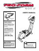 BEFORE YOU BEGIN Congratulations for selecting the new PROFORM® 600 E elliptical crosstrainer. The PROFORM® 600 E elliptical crosstrainer is an incredibly smooth exerciser that moves your feet in a natural elliptical path, minimizing the impact on your knees and ankles. And the unique PROFORM® 600 E features adjustable resistance and a state-of-the-art console to help you get the most from your exercise. Department toll-free at 1-800-999-3756, Monday through Friday, 6 a.m. until 6 p.m.