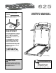 BEFORE YOU BEGIN Thank you for selecting the revolutionary PROFORM® 625 treadmill. The 625 treadmill combines advanced technology with innovative design to help you get the most from your exercise program in the convenience and privacy of your home. And when you’re not exercising, the unique 625 treadmill can be folded up, requiring less than half the floor space of other treadmills. at 1-800-999-3756, Monday through Friday, 6 a.m. until 6 p.m. Mountain Time (excluding holidays).