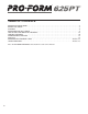 BEFORE YOU BEGIN Thank you for selecting the revolutionary PROFORM® 625PT treadmill. The 625PT treadmill combines advanced technology with innovative design to help you get the most from your exercise program in the convenience of your home. And when you’re not exercising, the unique 625PT can be folded up, requiring less than half the floor space of other treadmills. at 1-800-999-3756, Monday through Friday, 6 a.m. until 6 p.m. Mountain Time (excluding holidays).