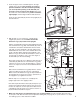 3. Insert the upper end of a Handrail (85) into the right Upright (82) as shown. Note: It will be necessary to pivot the Handrail to the side and back repeatedly (see arrow A) while pushing on the Handrail (see arrow B) to insert it fully into the Upright. Next, pivot the lower end of the Handrail down, push it toward the right Upright, and then align it with the indicated hole. 3 B 85 82 82 Insert the other Handrail (85) into the left Upright (82) as described above. 85 A Hole 4.