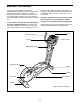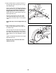 HOW TO USE THE ELLIPTICAL EXERCISER HOW TO MOVE THE ELLIPTICAL EXERCISER HOW TO FOLD AND UNFOLD THE ELLIPTICAL EXERCISER To move the elliptical exerciser, first fold it as described at the left. Next, stand in front of the elliptical exerciser and place one foot against the center of the front stabilizer. Pull the transport handle backward until the elliptical exerciser will roll on the front wheels. Carefully move the elliptical exerciser to the desired position, and then lower it.