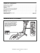 12. Tip: Avoid pinching the wire harnesses during this step. While another person holds the Console (11) near the Upright (10), connect the console wire harness to the Upper Wire Harness (65). 12 65 Attach the Console (11) to the Upright (10) with four M4 x 16mm Round Head Screws (92). 11 92 Console Wire Harness 10 Avoid pinching the wire harnesses during this step 13. The Console (11) can be operated with four 1.5V “D” batteries (not included); alkaline batteries are recommended.