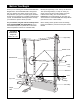 20. Wrap the Cable (45) around a 3 1/2Ó Pulley (35) in the direction shown. Attach the Pulley to the right Weight Upright (42) with an M10 x 93mm Bolt (43), an M10 Washer (6) and an M10 Nylon Locknut (1). Make sure the Bolt is mounted in the upper of the two holes, as shown. 20 6 1 40 43 35 42 45 21. Wrap one end of a Cable (45) around a 3 1/2Ó Pulley (35) in the direction shown.