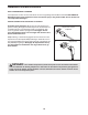 HOE DE LOOPBAND TE VERPLAATSEN 1. Houdt het uiteinde van de loopband vast zoals aangegeven. Trek, met gebruik van uw linker hand, de sluitknop naar links en houdt deze vast. Draai het onderstel totdat de grendel voorbij de veerslotpen is. Veerslotpen Sluitknop Sluitpin 2. Houdt de loopband met beide handen goed vast en laat de loopband op de vloer zakken. Laat de loopband niet op de grond vallen. Buig door uw knieën en houdt u rug recht om het risico op persoonlijk letsel te vermijden.