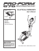 BEFORE YOU BEGIN Congratulations for selecting the new PROFORM® 675 CARDIO CROSSTRAINER. The PROFORM 675 is an incredibly smooth exerciser that moves your feet in a natural elliptical path, minimizing the impact on your knees and ankles. And the unique PROFORM 675 features adjustable resistance and a simple-touse console to help you get the most from your exercise. Welcome to a whole new world of natural, elliptical-motion exercise from PROFORM.