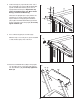 14. Partially tighten four M8 x 25mm Bolts (6) with four M8 Star Washers (10) into the Uprights (73, 78) and the Handrails (89, 90). Then, tighten all four Handrail Bolts. 14 See steps 5, 8, and 10. Tighten the four M10 x 96mm Bolts (5) and the four 1/4" x 3/4" Bolts (98). 89 6 6 10 73 6 90 6 15. Press the Latch Insert (70) into the Left Upright (73). If necessary, tap on the Latch Insert with a rubber mallet. 15 Locate the Latch Pin Assembly (72). Remove the knob from the pin.