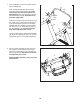 5. With the help of a second person, carefully tip the treadmill onto its right side. Partially fold the Frame (55) so that the treadmill is more stable; do not fully fold the Frame yet. 5 89 Attach a Wheel (96) to the Base (95) with a 3/8" x 2" Bolt (8) and a 3/8" Nut (10). Do not overtighten the Nut; the Wheel must turn freely. 8 Press a Base Cap (89) into the Base (95). 95 6. Align the oval hole in the Left Upright Spacer (88) with the oval hole in the Base (95) as described in step 3.