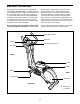 CONSOLE DESCRIPTION shown, the word Miles or the letters Kms will appear; when your speed is shown, the letters MPH or Km/H will appear. Refer to the drawing on page 10. Note: If there is a thin sheet of clear plastic on the face of the console, remove it. F. Pace bar graphs—When the manual mode is selected, only the left bar graph will appear. This bar graph represents your exercise pace. As you increase or decrease your pace, additional bars will appear or disappear on the bar graph.
