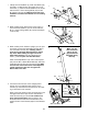 . Identify the Left Pedal (13). Attach the Left Pedal to the left Flex Bar (14) with an Adjustment Bolt (20), an M10 Washer (38), and an Adjustment Knob (15) as shown. Note: The Left Pedal can be attached in any of five positions (see HOW TO ADJUST THE PEDALS on page 9). 8 20 13 Attach the Right Pedal (not shown) in the same way. Make sure that both Pedals are in the same position. 14 38 15 9. Make sure that all parts of the elliptical crosstrainer are properly tightened.