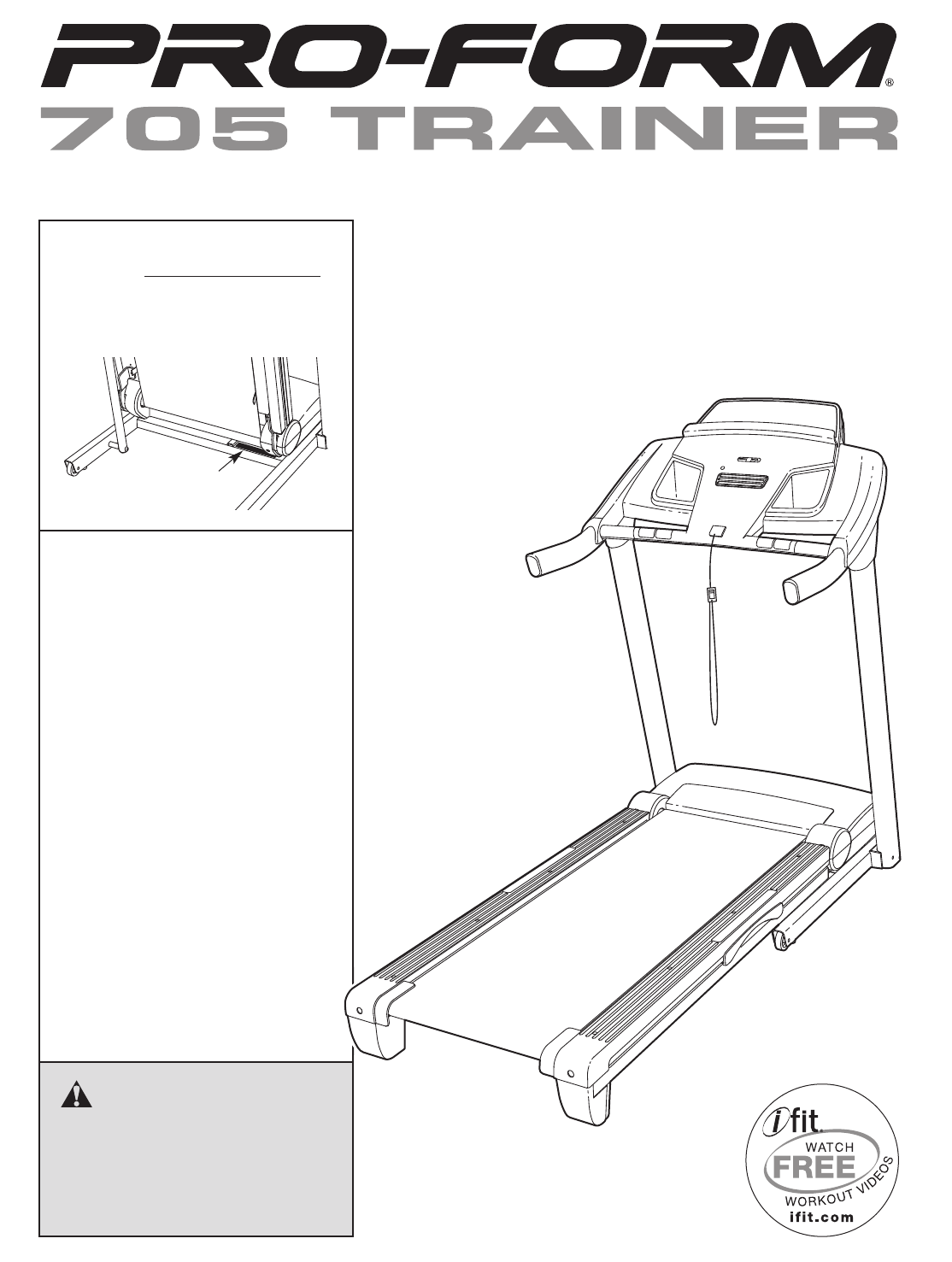 BEFORE YOU BEGIN Thank you for selecting the revolutionary PROFORM® 705 TRAINER treadmill. The 705 TRAINER treadmill offers an impressive selection of features designed to make your workouts at home more enjoyable and effective. And when youʼre not exercising, the unique treadmill can be folded up, requiring less than half the floor space of other treadmills. ing this manual, please see the front cover of this manual.