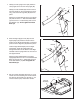 . Set the console assembly on the Left and Right Handrails (82, 83). Be careful not to pinch any wires. Insert the excess Upright Wire (87) into the Right Handrail. 12 Attach the console assembly to the Crossbar (107) with six #8 x 3/4" Screws (1). Start all six Screws before tightening any of them. Console Assembly 87 105 Attach the two Console Clamps (105) to the console assembly with four #8 x 1" Screws (53). 53 83 13. Hold the Right Upright Cover (86) against the console assembly.