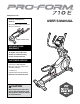 www.proform.com Model No. PFEL08011C.0 Serial No. Write the serial number in the space above for reference. Serial Number Decal ACTIVATE YOUR WARRANTY To register your product and activate your warranty today, contact Customer Service. CUSTOMER SERVICE Call toll-free 1-888-936-4266 Mon.–Fri. 7:30 a.m.–4:30 p.m. ET (excluding holidays) or email us at customerservice@iconcanada.ca Please do not contact the store. CAUTION Read all precautions and instructions in this manual before using this equipment.