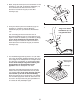 2. Maak, terwijl de tweede persoon de achterkant van het Onderstel (1) wat optilt, de Achterste Stabilisator (14) an het Onderstel vast met twee M10 x 73mm Schroeven met Ronde Kop (33) en twee M10 Veerringen (34). 2 14 1 34 34 3. Terwijl een tweede persoon de Staander (3) bij het Onderstel (1) vasthoudt, maak de Bovenste Draadkoker (32) aan op de Onderste Draadharnas (31).