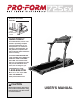 BEFORE YOU BEGIN Thank you for selecting the PROFORM¨ 725EX treadmill. The 725EX treadmill combines advanced technology with innovative design to let you enjoy an excellent form of cardiovascular exercise in the convenience and privacy of your home. And when youÕre not exercising, the unique 725EX can be folded up, requiring less than half the floor space of other treadmills. at 1-800-999-3756, Monday through Friday, 6 a.m. until 6 p.m. Mountain Time (excluding holidays).