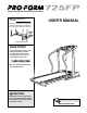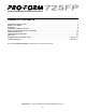 BEFORE YOU BEGIN Thank you for selecting the revolutionary PROFORM® 725FP treadmill. The 725FP treadmill combines advanced technology with innovative design to help you get the most from your exercise program in the convenience of your home. And when you’re not exercising, the unique 725FP can be folded up, requiring less than half the floor space of other treadmills. For your benefit, read this manual carefully before using the treadmill.