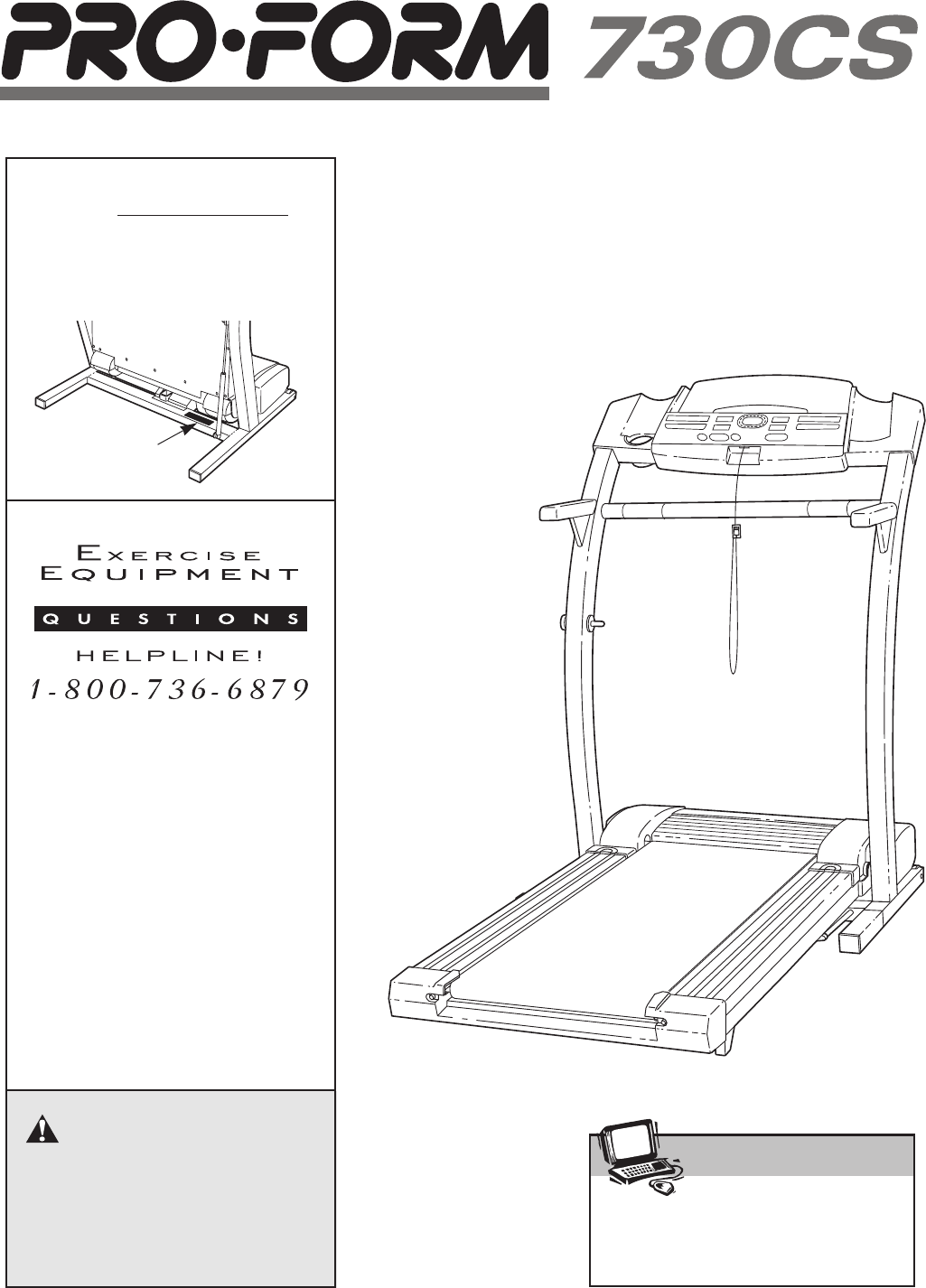 BEFORE YOU BEGIN Thank you for selecting the revolutionary PROFORM¨ 730CS treadmill. The 730CS treadmill combines advanced technology with innovative design to help you get the most from your exercise program in the convenience and privacy of your home. And when youÕre not exercising, the unique 730CS can be folded up, requiring less than half the floor space of other treadmills. Monday through Saturday, 7 a.m. until 7 p.m. Central Time (excluding holidays).