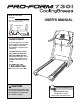 BEFORE YOU BEGIN Congratulations for purchasing the PROFORM® 730i treadmill. The 730i treadmill offers an impressive array of features to help you achieve your fitness goals in the convenience of your home. From the advanced console to the cushioned walking platform, the 730i treadmill is designed to make each workout more effective and enjoyable. And when you’re not exercising, the treadmill can be folded away, taking less than half the floor space of conventional treadmills.