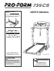 BEFORE YOU BEGIN Thank you for selecting the revolutionary PROFORM¨ 735CS treadmill. The 735CS treadmill combines advanced technology with innovative design to help you get the most from your exercise program in the convenience and privacy of your home. And when youÕre not exercising, the unique 735CS can be folded up, requiring less than half the floor space of other treadmills. Monday through Saturday, 7 a.m. until 7 p.m. Central Time (excluding holidays).