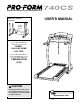 BEFORE YOU BEGIN Thank you for selecting the revolutionary PROFORM® 740CS treadmill. The 740CS treadmill combines advanced technology with innovative design to help you get the most from your exercise program in the convenience and privacy of your home. And when you’re not exercising, the unique 740CS can be folded up, requiring less than half the floor space of other treadmills. Friday 8h00 until 18h30 eastern time (excluding holidays).