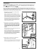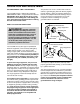 HOW TO LOWER THE TREADMILL FOR USE 1. Hold the upper end of the treadmill with your right hand as shown. Using your left hand, pull the latch knob to the left and hold it. Pivot the treadmill down until the frame is past the pin. Slowly release the latch knob. 1 Latch Knob Pin Catch 2. Hold the treadmill firmly with both hands, and lower the treadmill to the floor. Do not drop the treadmill frame to the floor. CAUTION: To decrease the possibility of injury, bend your legs and keep your back straight.
