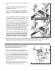 6. Press a CD Holder (85) into each side of the Upright Base (97). If the Wheels (not shown) are touching the floor, or if the treadmill rocks slightly, see HOW TO LEVEL THE TREADMILL on page 20. 6 84 85 85 97 86 80 If you wish to adjust the height of the Uprights (80, 84), go to step 7. If the Uprights are at the desired height, tighten the four Upright Bolts (86) and go to step 8. 97 86 7. Note: The Uprights (80, 84) can be attached at three different heights.
