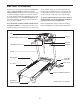 HOW TO LOWER THE TREADMILL FOR USE 1. Hold the upper end of the treadmill with your right hand. Pull the latch knob to the left and hold it. It may be necessary to push the frame forward as you pull the knob to the left. Pivot the frame downward and release the latch knob. Frame Latch Knob 2. Hold the metal frame firmly with both hands, and lower it to the floor. CAUTION: To decrease the possibility of injury, do not lower the frame by gripping only the plastic foot rails.