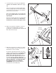 5. Lower the Frame (not shown) (see HOW TO LOWER THE TREADMILL FOR USE on page 20). 5 64 Have a second person hold the Handrail (20) near the Uprights (84). Insert the Wire Harness (77) into the hole in the bottom of the Handrail and out of the top as shown. 8 20 64 8 Next, set the Handrail (20) on the Uprights (84). Do not let the Wire Harness (77) fall into the right Upright.