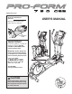 BEFORE YOU BEGIN Thank you for purchasing the revolutionary PROFORM® 780 CSE elliptical exerciser. The 780 CSE elliptical exerciser provides a wide array of features designed to make your workouts at home more effective and enjoyable—and when youʼre not exercising, the unique elliptical exerciser can be folded out of the way. tions after reading this manual, please see the front cover of this manual. To help us assist you, note the product model number and serial number before contacting us.