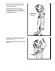 HOW TO MOVE THE ELLIPTICAL EXERCISER HOW TO EXERCISE ON THE ELLIPTICAL EXERCISER To move the elliptical exerciser, first fold it as described on page 12. Next, stand in front of the elliptical exerciser, hold the handgrip pulse sensors, and place one foot against the center of the front stabilizer. Pull the pulse sensors until the elliptical exerciser will roll on the front wheels. Carefully move the elliptical exerciser to the desired position, and then lower it.