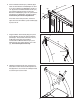 6. Fixez le Montant Gauche (81) à la Base (90) à lʼaide de deux Boulons en Métal/Nylon de 3/8" x 3 1/2" (8), un Boulon en Métal/Nylon de 3/8" x 1 1/2" (6) et deux Rondelles Étoilées de 3/8" (12) aux endroits indiqués. Serrez en partie les Boulons en Métal/Nylon jusquʼà ce que les têtes des Boulons en Métal/Nylon touchent la Base ; ne les serrez pas encore complètement. 6 90 12 8 Avec lʼaide dʼune autre personne, inclinez le tapis de course de manière à poser la Base (90) à plat sur le sol. 7.