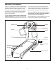 24. Inspect and properly tighten all parts of the treadmill regularly. 20. Never leave the treadmill unattended while it is running. Always remove the key, unplug the power cord, and switch the reset/off circuit breaker to the off position when the treadmill is not in use. (See the drawing on page 5 for the location of the circuit breaker.) 25. 21. Do not attempt to raise, lower, or move the treadmill until it is properly assembled.