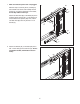 13. Carefully lower the Uprights (81, 83). Tighten the two 3/8" x 1 1/2" Patch Bolts (6) and the two 3/8" x 3 1/2" Patch Bolts (8). 13 81 8 Raise the Uprights (81, 83). 6 83 6 14. Raise the Frame (51) to the position shown. Have a second person hold the Frame until this step is completed. 8 14 Orient the Storage Latch (55) so that the large barrel and the Latch Knob (54) are in the positions shown. 51 Remove the tie from the upper end of the Storage Latch (55).