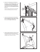 . Be careful not to pinch the wires in the Right Handrail (78). 11 Attach the console assembly to the Right Handrail (78) with two #8 x 3/4" Screws (1), a 1/4" x 1 1/4" Bolt (4), and a 1/4" Star Washer (10). Repeat this step on the left side of the console assembly. Start all four Screws and both Bolts before tightening any of them. Console Assembly 78 See steps 4, 6, and 7. Tighten all the bolts used in these assembly steps. 1 10 4 12.