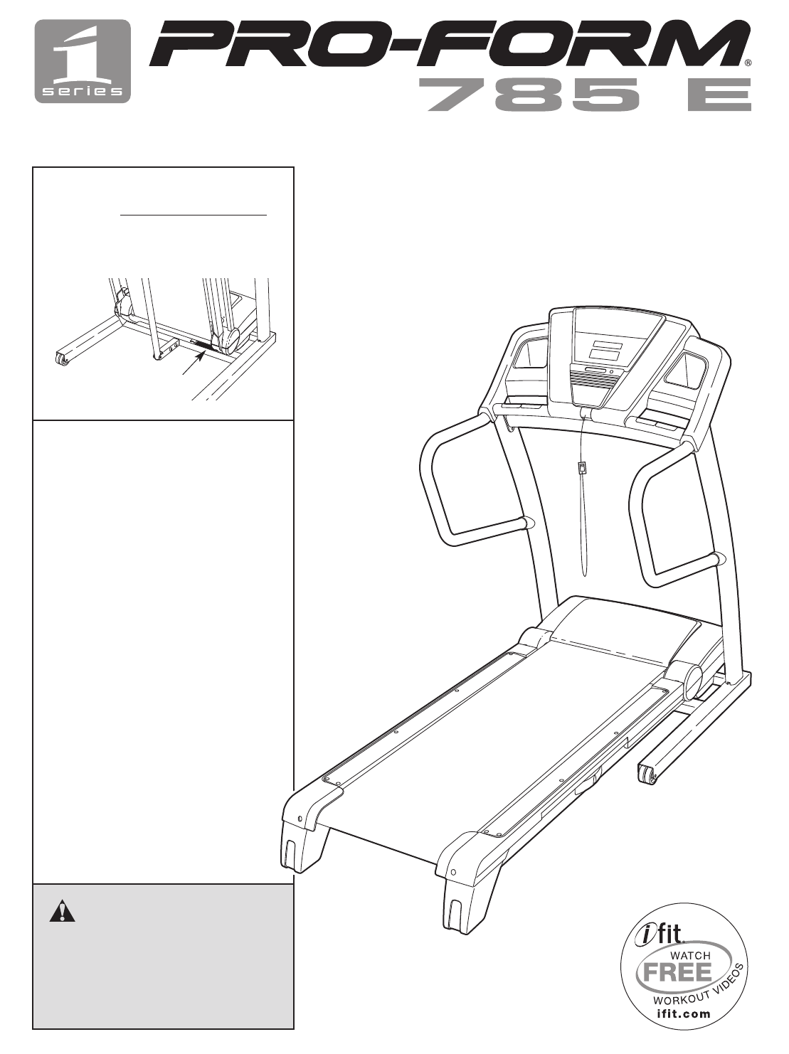 BEFORE YOU BEGIN Thank you for selecting the revolutionary PROFORM® iSERIES 785 E treadmill. The 785 E treadmill offers an impressive selection of features designed to make your workouts at home more enjoyable and effective. And when youʼre not exercising, the unique treadmill can be folded up, requiring less than half the floor space of other treadmills. ual. To help us assist you, note the product model number and serial number before contacting us.