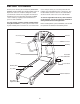 CONSOLE DIAGRAM IN Key FEATURES OF THE CONSOLE The treadmill console offers a selection of features designed to make your workouts more effective. When the manual mode of the console is selected, the speed and incline of the treadmill can be changed with the touch of a button. As you exercise, the console will display continuous exercise feedback. You can even measure your heart rate using the built-in pulse sensor or the optional chest pulse sensor (see page 19).