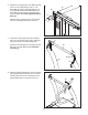 1. Make sure that the power cord is unplugged. 1 With the help of a second person, carefully tip the treadmill onto its left side. Partially fold the Frame (51) so that the treadmill is more stable; do not fully fold the Frame yet. Attach two Base Feet (87) to the Base (90) in the locations shown with two #8 x 1" Tek Screws (2) and two Base Foot Spacers (88). Then, attach two Base Feet (87) with only two #8 x 1" Tek Screws (2). 90 87 51 88 87 2 2 87 88 2.