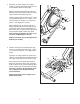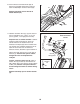 12. Fxez le Porte-Bouteille (37) au Montant (4) à l'aide de deux Vis de M4 x 16mm (104). 12 4 104 104 37 13. Pendant quʼune autre personne tient la Console (7) près du Montant (4), reliez le fil de la console et Goupement de Fils Supérieur (110). Ensuite, reliez les fils du détecteur cardiaque de la console aux Fils du Détecteur Cardiaque (63). 13 7 Éviter de coincer les Fils Fil de la Console 110 4 Enfilez le fil excédentaire vers le bas dans le Montant (4). Conseil : évitez de coincer les fils.