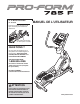 AVANT DE COMMENCER Merci d'avoir choisi le nouvel appareil elliptique PROFORM® 785 F. L'appareil elliptique 785 F est équipé dʼun éventail de fonctionnalités conçues pour rendre vos entraînements chez vous plus agréables et plus efficaces. permettre de mieux vous assister, notez le numéro du modèle et le numéro de série de lʼappareil avant de communiquer avec nous. Le numéro du modèle et lʼemplacement de lʼautocollant du numéro de série sont indiqués sur la page couverture avant de ce manuel.