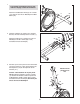 COMMENT UTILISER L'APPAREIL ELLIPTIQUE COMMENT DÉPLACER L'APPAREIL ELLIPTIQUE COMMENT BRANCHER LE BLOC D'ALIMENTATION À cause de la taille et du poids de lʼappareil elliptique, deux personnes sont nécessaires pour le déplacer. Tenez-vous debout devant lʼappareil elliptique, tenez le montant et placez un pied contre l'une des roues avant. Tirez le montant et demandez à l'autre personne de soulever la poignée de la rampe jusquʼà ce que lʼappareil elliptique se déplace sur les roues avant.