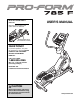 BEFORE YOU BEGIN cover of this manual. To help us assist you, note the product model number and serial number before contacting us. The model number and the location of the serial number decal are shown on the front cover of this manual. Thank you for selecting the new PROFORM® 785 F elliptical exerciser. The 785 F elliptical exerciser provides a wide array of features designed to make your workouts at home more effective and enjoyable.