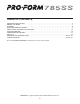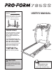 BEFORE YOU BEGIN Thank you for selecting the revolutionary PROFORM® 785SS treadmill. The 785SS treadmill combines advanced technology with innovative design to help you get the most from your exercise program in the convenience of your home. And when you’re not exercising, the unique 785SS can be folded up, requiring less than half the floor space of other treadmills. at 1-800-999-3756, Monday through Friday, 6 a.m. until 6 p.m. Mountain Time (excluding holidays).