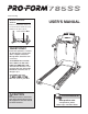 BEFORE YOU BEGIN Thank you for selecting the revolutionary PROFORM® 785SS treadmill. The 785SS treadmill combines advanced technology with innovative design to help you get the most from your exercise program in the convenience of your home. And when you’re not exercising, the unique 785SS can be folded up, requiring less than half the floor space of other treadmills. Department toll-free at 1-800-999-3756, Monday through Friday, 6 a.m. until 6 p.m. Mountain Time (excluding holidays).