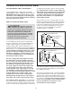 HOW TO LOWER THE TREADMILL FOR USE 1. Hold the upper end of the treadmill with your right hand as shown. Using your left hand, pull the latch knob to the left and hold it. Pivot the treadmill down until the frame is past the pin on the latch knob. Frame Latch Knob Latch Pin 2. Hold the treadmill firmly with both hands, and lower the treadmill to the floor. CAUTION: To decrease the possibility of injury, bend your legs and keep your back straight.