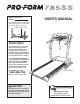 BEFORE YOU BEGIN Thank you for selecting the revolutionary PROFORM¨ 785SS treadmill. The 785SS treadmill combines advanced technology with innovative design to help you get the most from your exercise program in the convenience of your home. And when youÕre not exercising, the unique 785SS can be folded up, requiring less than half the floor space of other treadmills. at 1-800-999-3756, Monday through Friday, 6 a.m. until 6 p.m. Mountain Time (excluding holidays).