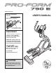 www.proform.com Model No. PFEL07909.2 Serial No. Write the serial number in the space above for reference. Serial Number Decal (on underside of frame) QUESTIONS? If you have questions, or if parts are damaged or missing, DO NOT CONTACT THE STORE; please contact Customer Care. IMPORTANT: Please register this product (see the limited warranty on the back cover of this manual) before contacting Customer Care. 1-888-533-1333 CALL TOLL-FREE: Mon.–Fri. 6 a.m.–6 p.m. MT Sat. 8 a.m.–4 p.m.